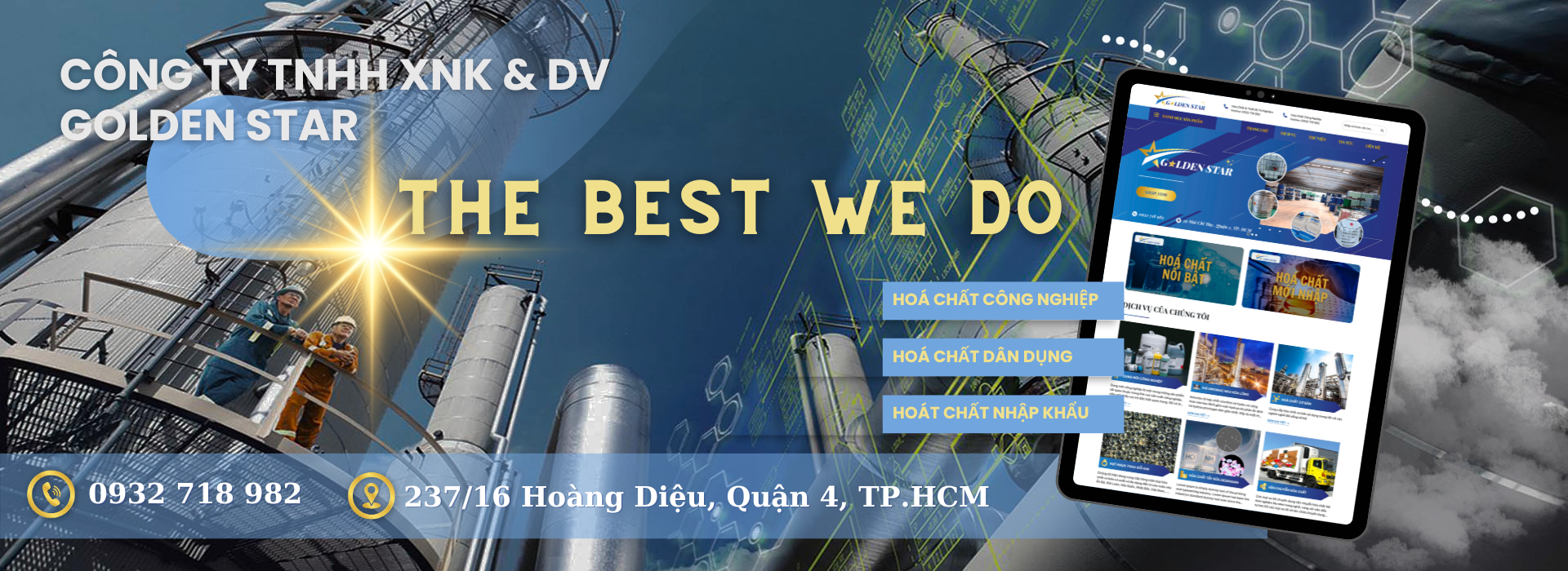 Golden Star Company Limited chuyên kinh doanh hóa chất dung môi công nghiệp với tiêu chí chất lượng, uy tín và hiệu quả. Công ty chúng tôi chuyên cung cấp các loại hóa chất công nghiệp, bao gồm hóa chất xi mạ, hóa chất thuỷ sản, hóa chất dệt nhuộm, dung môi công nghiệp, hóa chất cơ bản, hóa chất xử lý nước, hóa chất tẩy rửa, hóa chất thực phẩm và nhiều sản phẩm khác. Golden Star luôn đặt chất lượng sản phẩm lên hàng đầu. Bằng cách sử dụng các nguồn nguyên liệu chất lượng cao và quy trình sản xuất tiên tiến, công ty chúng tôi đảm bảo rằng sản phẩm của mình luôn đáp ứng được các tiêu chuẩn chất lượng cao nhất. Với nhiều năm kinh nghiệm trong ngành, công ty của bạn đã xây dựng được một danh tiếng tốt trong việc cung cấp các sản phẩm chất lượng cao và dịch vụ tốt nhất cho khách hàng. Chúng tôi luôn đặt hiệu quả lên hàng đầu. Bằng cách sử dụng các sản phẩm chất lượng cao và quy trình sản xuất tiên tiến, Golden Star luôn đảm bảo rằng khách hàng của mình luôn nhận được giá trị, Giải pháp tốt nhất cho Quý Khách hàng!